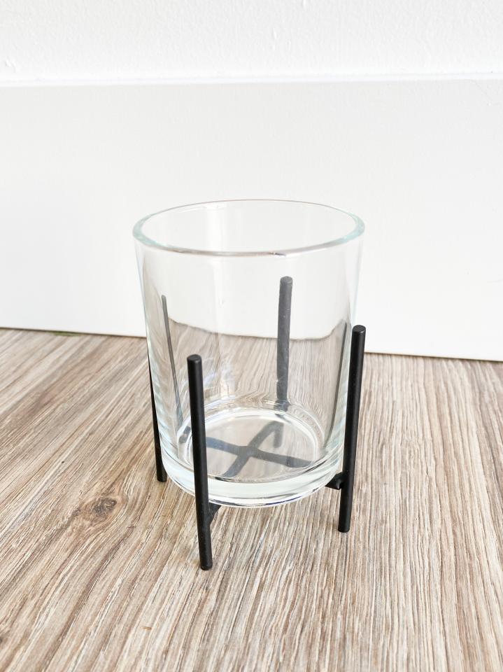 Priced per votive. This clear votive can be used with or without the black iron stand. Battery operated candle or fuel cell not included, but available for an additional fee.