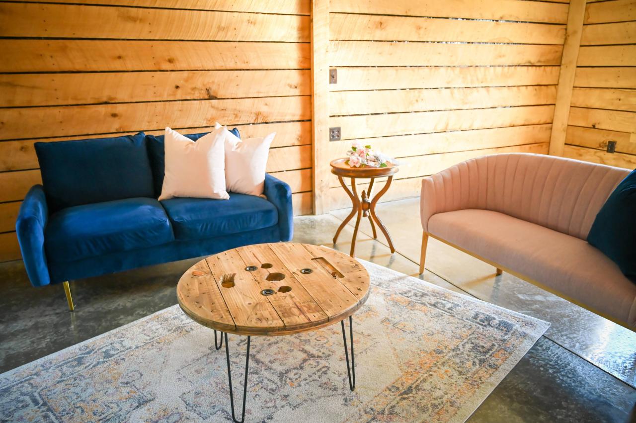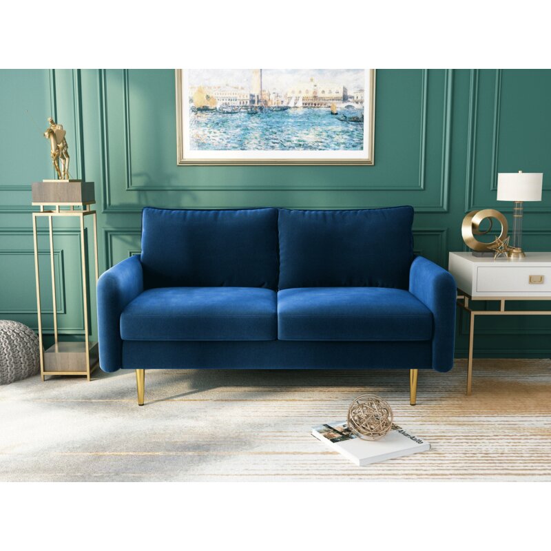 This modern navy blue love seat is stunning! The gold legs give it just that extra touch for your lounge or bride and groom seating.
