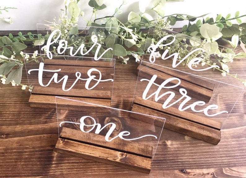 QC – Acrylic Table Numbers- White Letters/ Wood Block