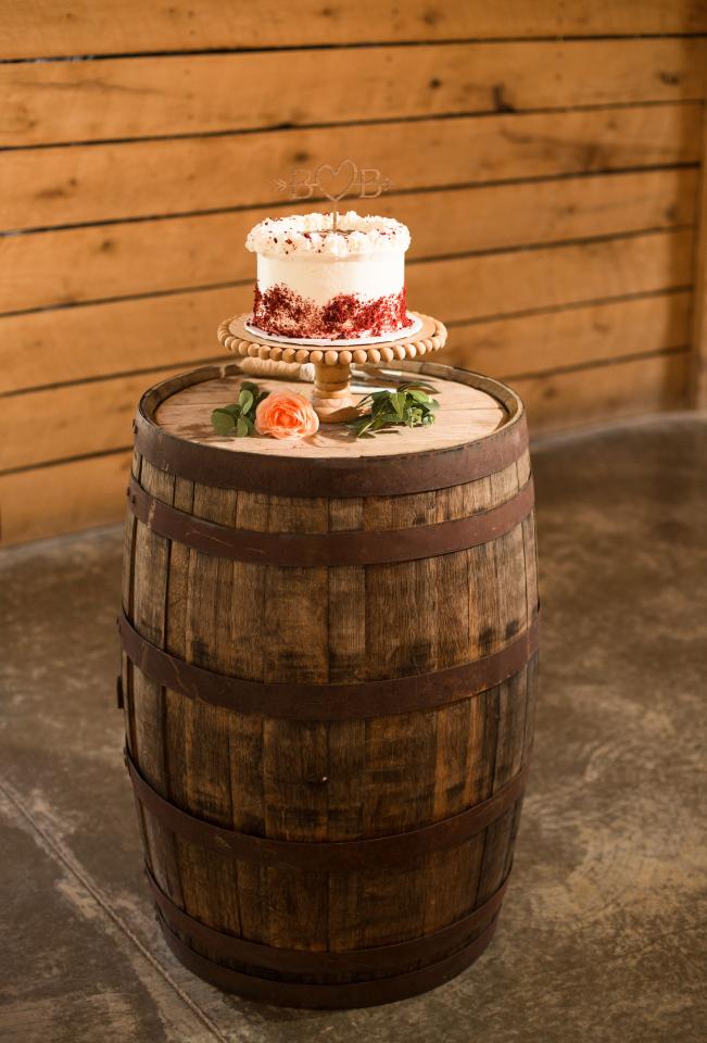Priced per barrel. Use as a cake table for your rustic wedding! Can also be used at ceremony aisle and top with floral! Floral available for additional cost.